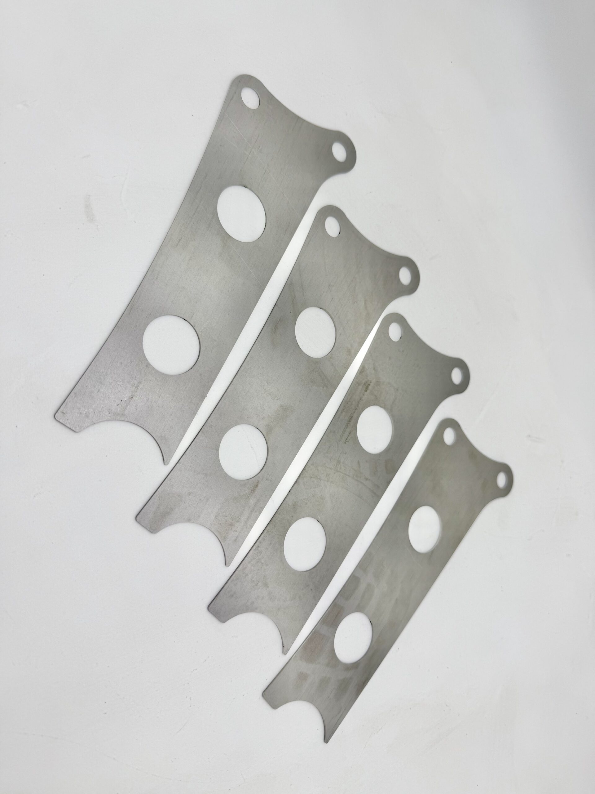 Kit composé de 4 tôles en acier, permet de renforcer les deux flasques d’un train arrière.